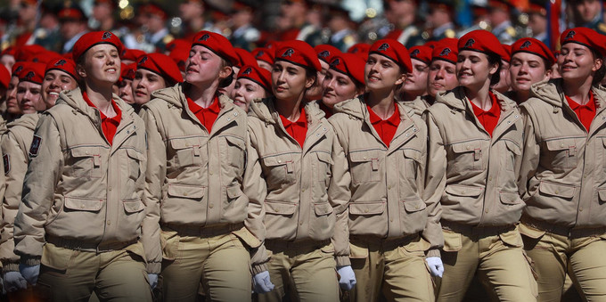 Lực lượng trẻ nhất tham gia duyệt binh là khối học viên Học viện quân nhạc Moscow mang tên trung tướng Valery Khalilov, Trường lục quân Suvorov cơ sở Moscow và Tver, Học viện hải quân Nakhimov. Ngoài ra, đây cũng là lần đầu tiên Đội thanh niên thiếu sinh quân yêu nước toàn Nga (Yunarmy) tham gia cuộc duyệt binh này.