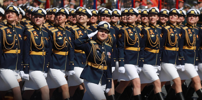 Khối duyệt binh nữ có tổng cộng 210 người, gồm học viên Đại học tổng hợp quân sự, Đại học hậu cần quân sự Volsky. Các nữ học viên thuộc Học viện không quân vũ trụ Mozhaysky và Học viện thông tin quân sự Budeny cũng lần đầu tham gia duyệt binh.