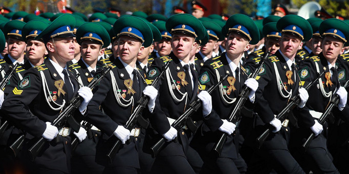 Khối duyệt binh của Đại học biên phòng Moscow, trực thuộc Cơ quan An ninh Liên bang Nga (FSB).