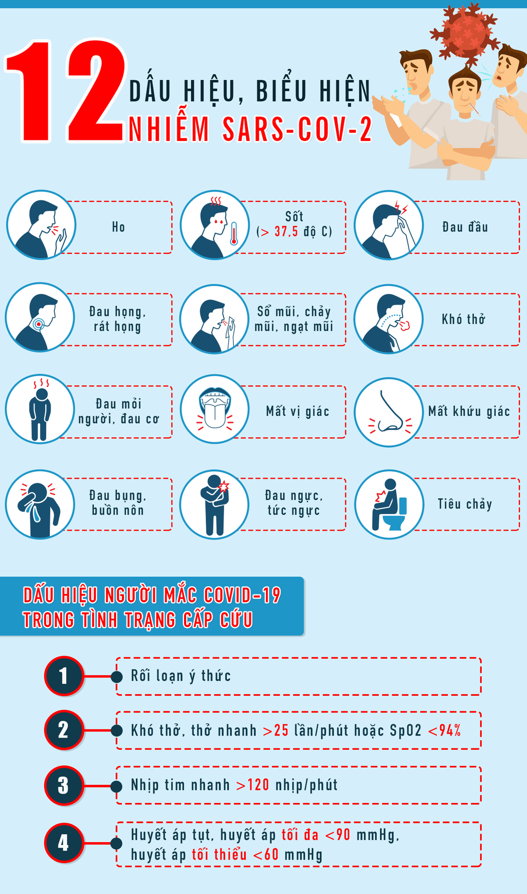 12 dấu hiệu, biểu hiện nhiễm SARS-CoV-2