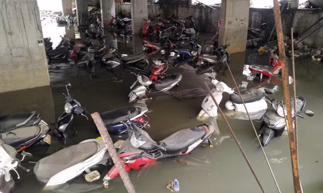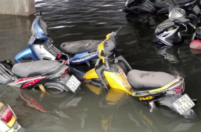 Bãi giữ xe số 5D đường Nguyễn Siêu (quận 1), cả nghìn chiếc xe đến trưa nay vẫn còn chìm trong nước.