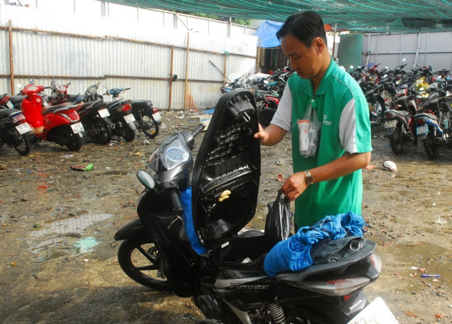 "Tụi tui nhờ cảnh sát PCCC bơm nước, vớt xe lên từ tối qua nhưng chưa rút hết. Cũng ráng làm để đưa xe ra ngoài nhưng nhiều quá lại ngập sâu nên rất chậm", một nhân viên bãi giữ xe nói.