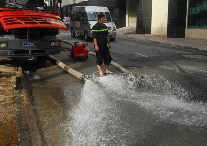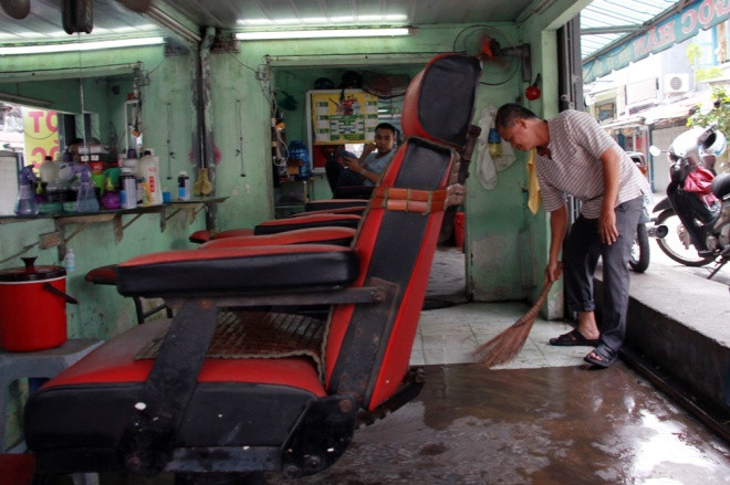 Tại các tuyến đường ngập nặng đêm qua, người dân thức dậy từ 4h để dọn dẹp. "Chưa thấy trận mưa nào lớn dữ vậy. Nước mưa xối ào ào, các cống không thoát kịp nước nên nó trào lên nhà", ông Sơn - chủ tiệm cắt tóc kể và cho biết đồ đạc không bị hư hại nhiều.