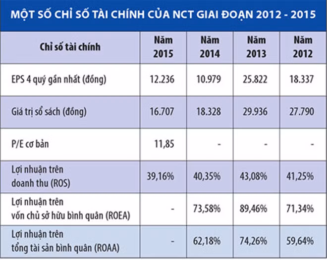 Đây không phải là lần đầu tiên NCT thực hiện chi trả cổ tức cao như vậy, mà trong 5 năm qua, doanh nghiệp này trả cổ tức từ 128 - 236%/năm, hầu hết bằng tiền mặt, riêng năm 2013 trả 70% do Công ty cần tăng vốn để mở rộng hoạt động sản - xuất kinh doanh.