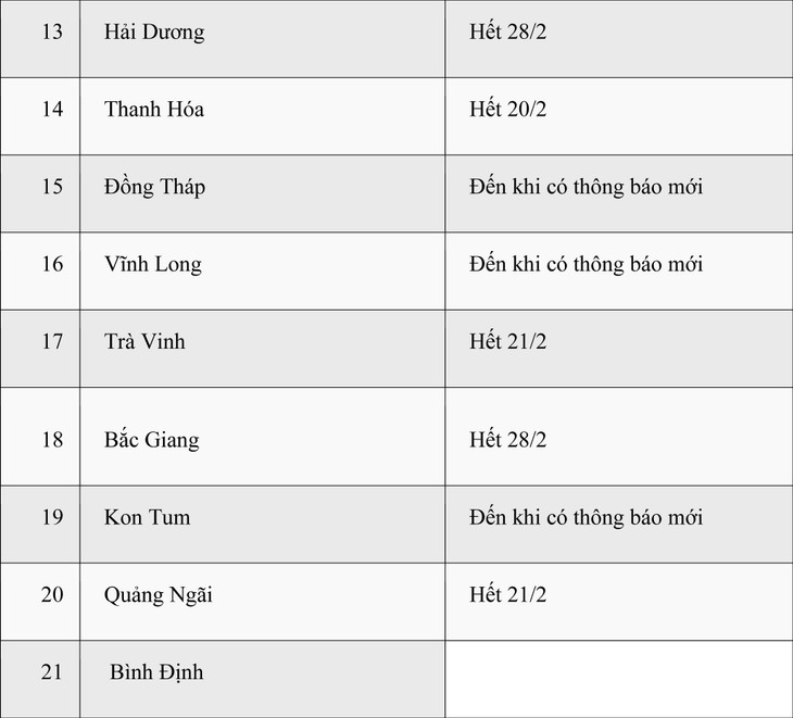 Đến sáng 16/2, 21 địa phương đã ra quyết định cho học sinh tiếp tục tạm dừng đến trường để phòng, chống Covid-19.
