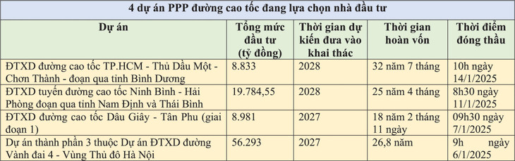 4 dự án PPP trên thực hiện theo Luật PPP. Theo quy trình, trước khi đấu thầu, trong thời gian lập báo cáo nghiên cứu khả thi dự án PPP, cơ quan có thẩm quyền các dự án đã tổ chức khảo sát sự quan tâm của nhà đầu tư, bên cho vay.