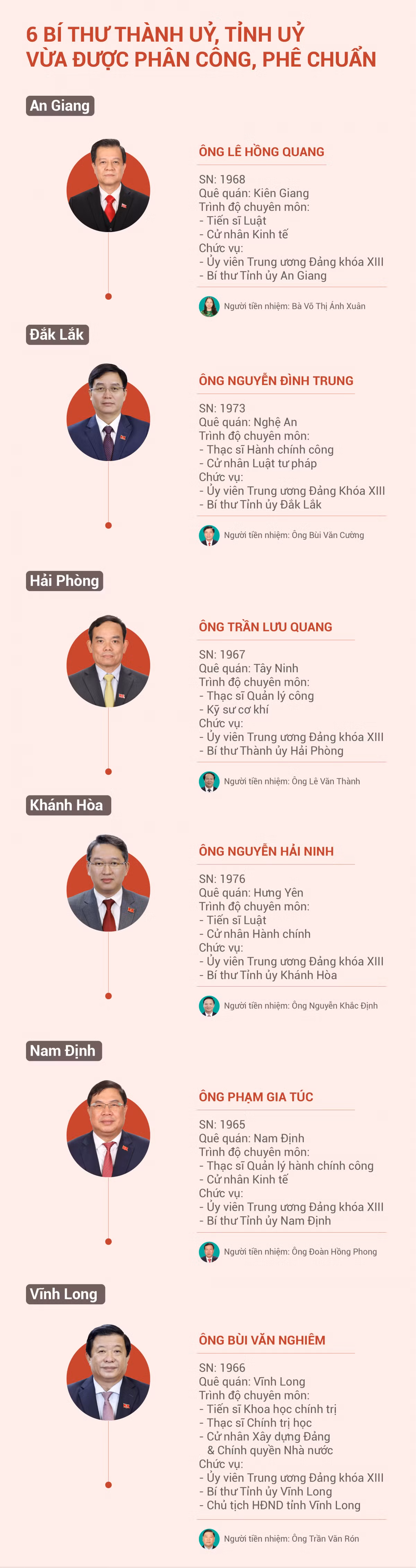 Trong 6 tân Bí thư, người nhiều tuổi nhất sinh năm 1965, người trẻ nhất sinh năm 1976.