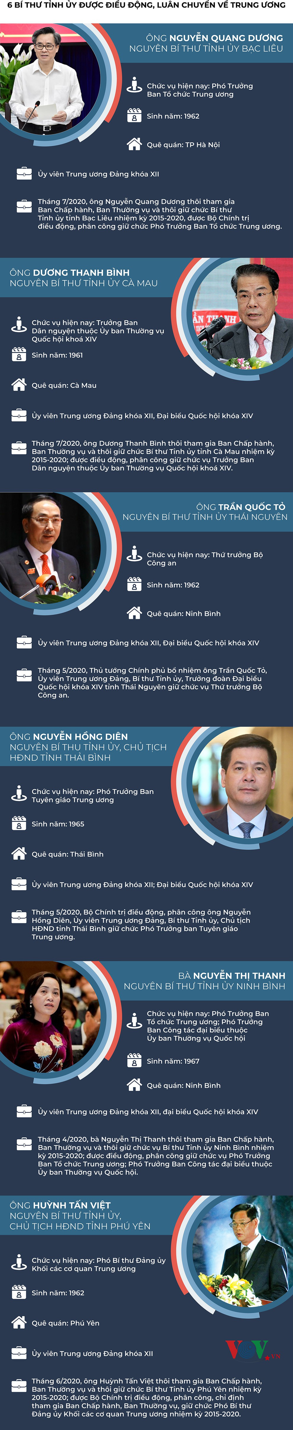 Từ đầu năm đến nay, 6 Bí thư Tỉnh ủy các địa phương đã được điều động, luân chuyển về Trung ương.