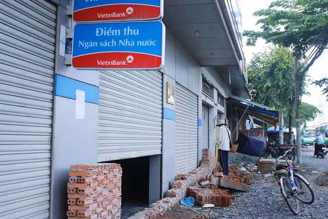 Phòng giao dịch của ngân hàng VietinBank đã đóng cửa, chuyển sang địa điểm giao dịch mới từ 26/9. Mặt tiền phía trước với ngổn ngang gạch đá trở thành chỗ phóng uế của người dân.