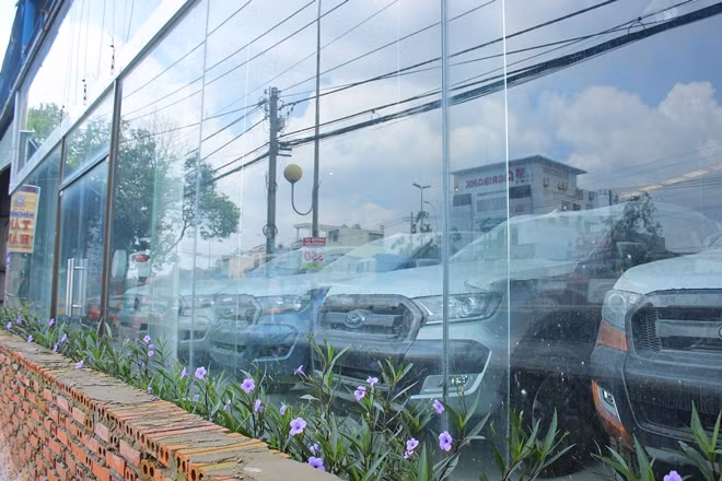 Ôtô trưng bày trong cửa hàng cũng nằm đắp chiếu.
