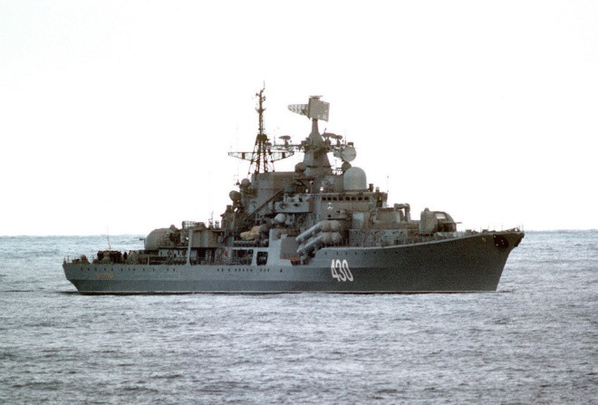 Tàu dài 156 m, rộng 17,3 m, lượng giãn nước đầy tải 8.480 tấn. Vũ khí chính trên tàu gồm 8 tên lửa chống hạm P-270 Moskit có tầm bắn 120-250 km và 48 tên lửa phòng không tầm trung. Ảnh: Wikipedia