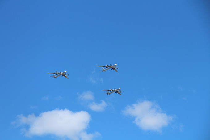 Biên đội ba chiếc Tu-95MSM cũng xuất hiện trong lễ duyệt binh năm nay. Đây là phiên bản mới nhất của dòng oanh tạc cơ Tu-95MS, được cải tiến để mang tên lửa hành trình tàng hình Kh-101 với tầm bắn có thể lên tới 5.500 km.