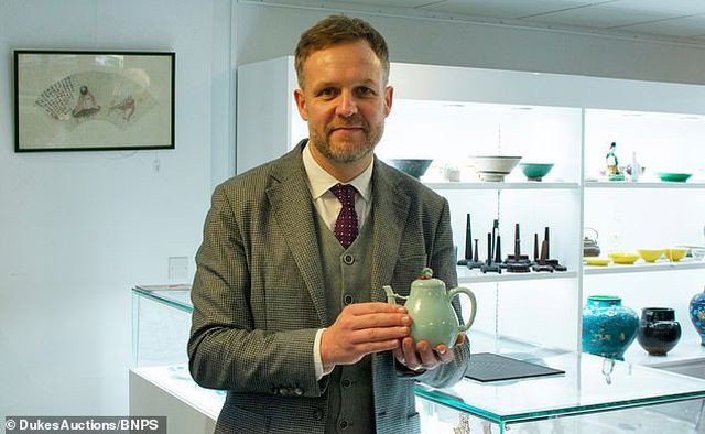 Ông Young tới từ Cơ sở bán đấu giá Duke ở Dorchester, Dorset, Anh đã xác định ấm trà thuộc về hoàng đế Càn Long thời nhà Thanh ở Trung Quốc trong khoảng thời gian từ năm 1735-1796.
