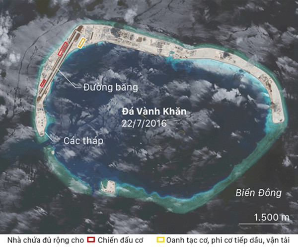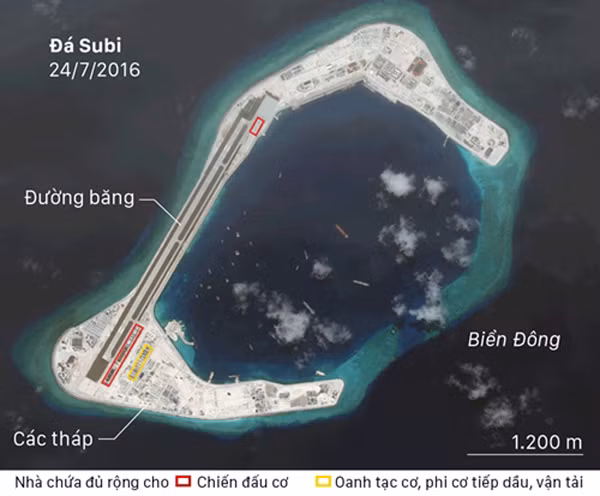 Bằng chứng về các sân bay quân sự xuất hiện một tháng sau khi Tòa Trọng tài ở The Hague, Hà Lan, lên án hành động của Trung Quốc ở Biển Đông, trong đó có bồi đắp phi pháp các đá trong khu vực thành đảo nhân tạo rồi xây dựng trên đó.