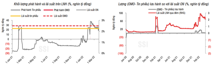 Lãi suất liên ngân hàng tiếp tục tăng nhẹ và hình thành nền mặt bằng mới: qua đêm 2,28%/năm; 1 tuần 2,44%/năm. Với mức lãi suất này, thanh khoản hệ thống dần ổn định trở lại sau áp lực thanh khoản hồi Tết Nguyên Đán và chỉ mang tính thiếu hụt cục bộ ở một số ngân hàng nhỏ.