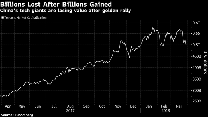Các công ty này cũng là các hãng được hưởng lợi lớn từ đợt tăng giá cố phiếu công nghệ toàn cầu trong năm 2017. Tuy nhiên, cổ phiếu công nghệ hiện đang đảo chiều. Cảnh báo của Tencent về áp lực biên cũng như việc cổ đông lớn nhất của hãng bất ngờ bán 10 tỷ USD giá trị cổ phiếu đã khiến cổ phiếu Tencent sụt giảm mạnh. Tencent đang hướng tới tháng giảm giá thị trường đầu tiên kể từ năm 2016 tại Hong Kong.