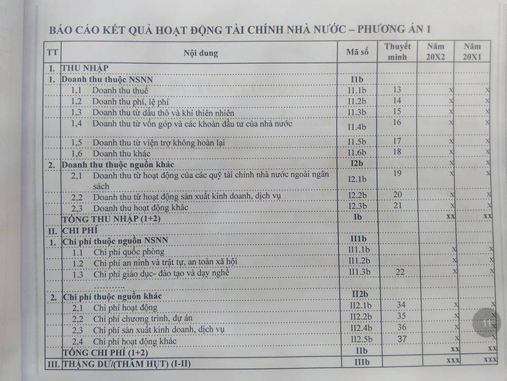 Về cơ bản, BCTC Nhà nước tương đối giống với BCTC tại các doanh nghiệp hoạt động kinh doanh. Đáng chú ý, ở 2 phương án về báo cáo kết quả hoạt động tài chính Nhà nước, những con số chi tiết về chi phí thuộc nguồn Ngân sách Nhà nước được phân loại khác nhau.