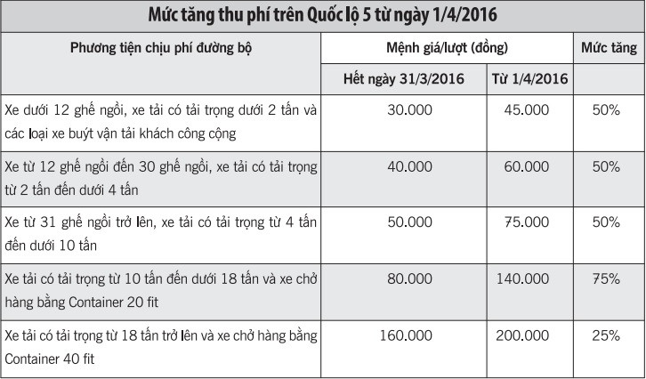 | Mức phí trên cao tốc Hà Nội - Hải Phòng sẽ tăng 25% từ ngày 1/4/2016. Ảnh: Tất Tiên |