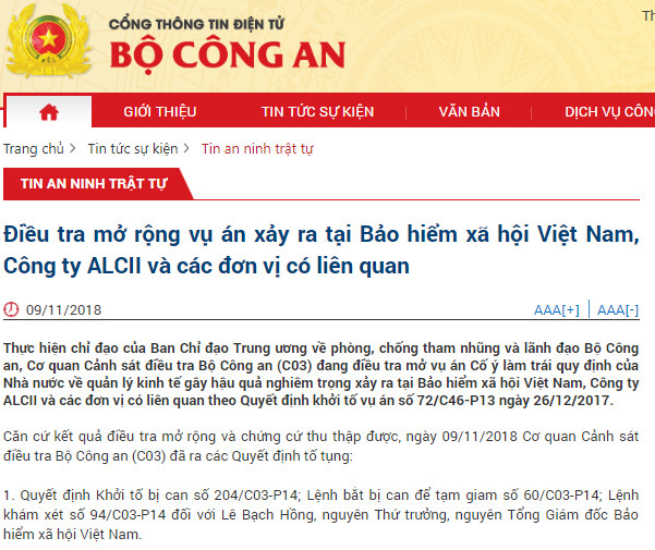 Căn cứ kết quả điều tra mở rộng và chứng cứ thu thập được, ngày 09/11/2018 Cơ quan Cảnh sát điều tra Bộ Công an (C03) đã ra các Quyết định tố tụng: