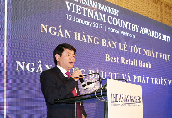 | Phó Tổng Giám đốc BIDV Lê Trung Thành đại diện BIDV nhận giải thưởng Ngân hàng Bán lẻ tốt nhất Việt Nam lần thứ 3 do The Asian Banker bình chọn |