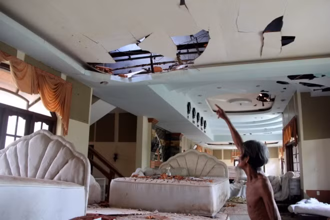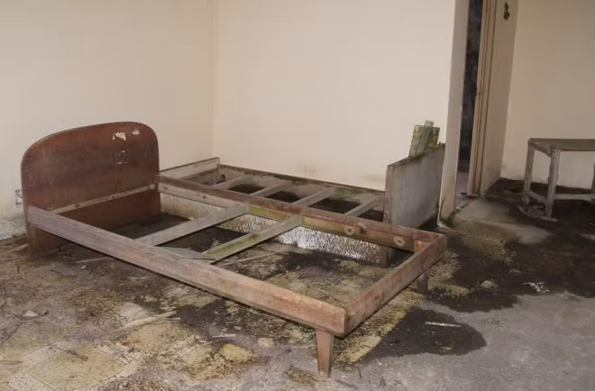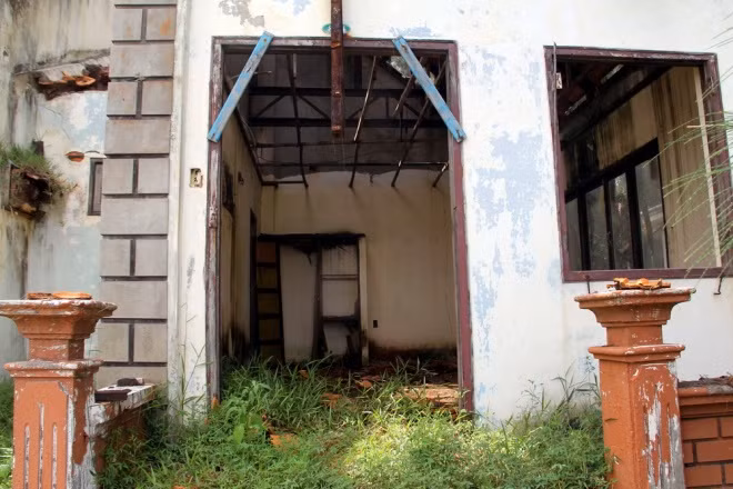 Giường chiếu, phòng ốc của một resort ẩm ướt do mưa tạt vào, cùng thực nạn mất trộm ở những khu du lịch bỏ hoang này rất phổ biến.