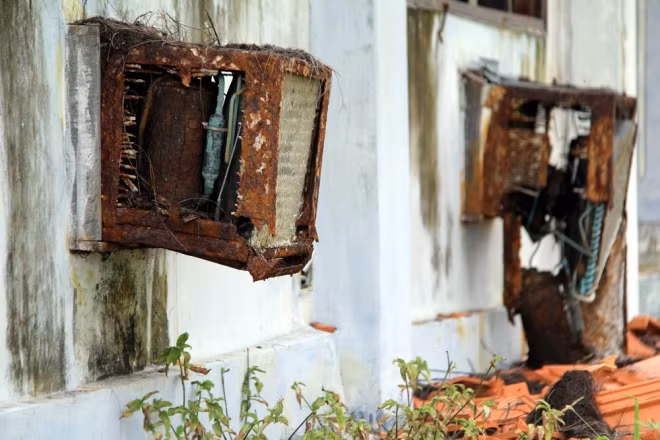 Hai hệ thống thông gió ở các phòng nghỉ bị rỉ rét do mưa nắng gần 10 năm nay.