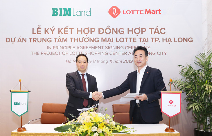 (BĐT) - Ngày 08/11/2019, Công ty CP Bất động sản BIM (BIM Land), thành viên Tập đoàn BIM Group đã ký kết thỏa thuận hợp tác với Công ty Cổ phần Trung tâm thương mại LOTTE Việt Nam về việc đầu tư xây dựng Trung tâm thương mại LOTTE Mart đầu tiên tại khu đô thị Halong Marina, thành phố Hạ Long, Quảng Ninh.