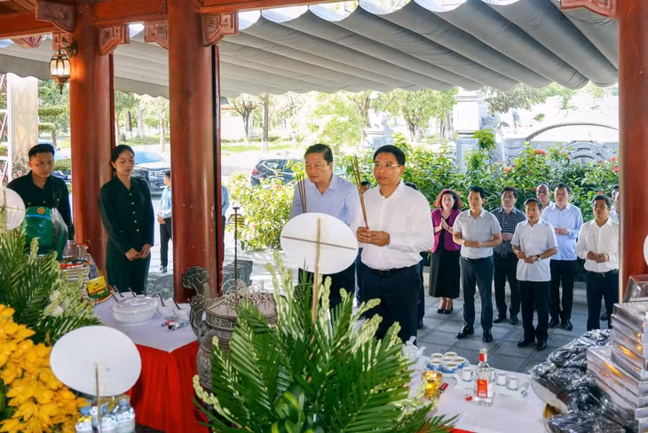 | Bộ trưởng Nguyễn Văn Thắng và Chủ tịch UBND tỉnh Nghệ An Lê Hồng Vinh dâng hương, dâng hoa tưởng niệm tại Khu di tích lịch sử quốc gia Truông Bồn |