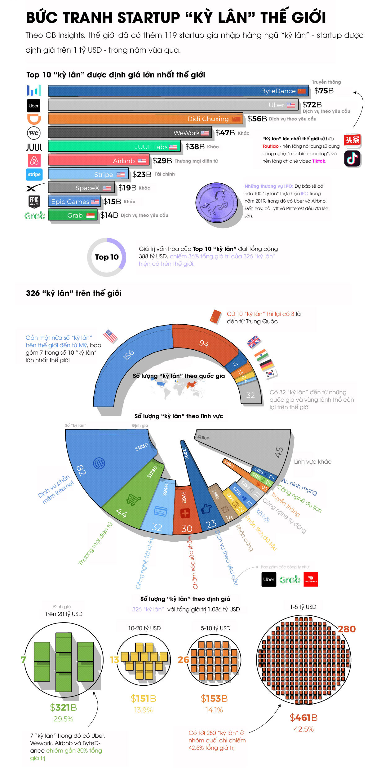 (BĐT) - Theo CB Insights, thế giới đã có thêm 119 stratup gia nhập hàng ngũ "kỳ lân" - những startup được định giá trên 1 tỷ USD - trong năm vừa qua.
