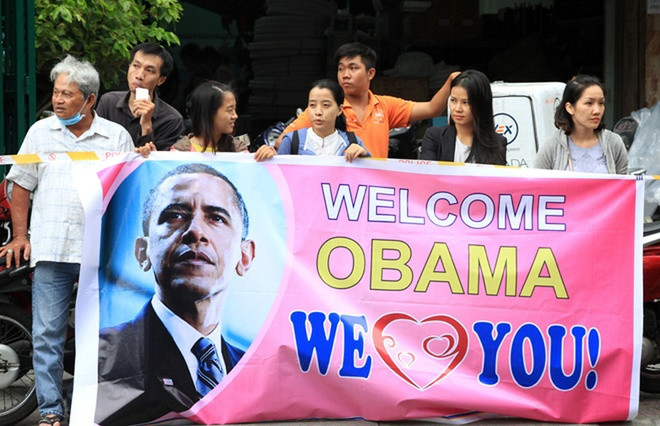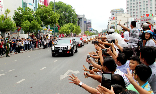 Trong buổi chiều ở TP HCM, những nơi Tổng thống Obama đi qua đều nhận được sự chào đón nồng nhiệt của người dân.