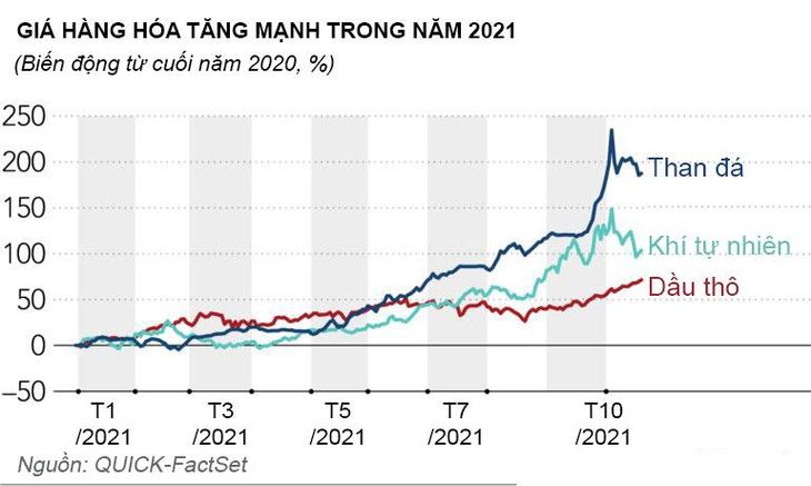 Chỉ số giá tiêu dùng tại một quốc gia cũng tăng cao khi các hoạt động kinh tế bắt đầu tăng trở lại sau thời gian bị ngưng trệ vì dịch bệnh. Dù các nhà hoạch định chính sách đang cố gắng xoa dịu nỗi lo của giới đầu tư, việc giá than, khí tự nhiên và dầu thô tăng mạnh như “đổ thêm dầu vào lửa”.