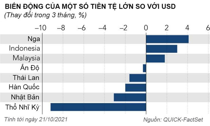 “Việc Fed có thể tăng lãi suất sớm hơn dự kiến giữa áp lực lạm phát toàn cầu gia tăng là mối lo ngại chính đối với các đồng tiền châu Á”, Ken Cheung, Giám đốc chiến lược ngoại hối châu Á tại Ngân hàng Mizuho ở Hồng Kông, cho biết. “Điều này đã khiến một số quốc gia bắt đầu tiến tới bình thường hóa chính sách tiền tệ để ứng phó với áp lực lạm phát”.