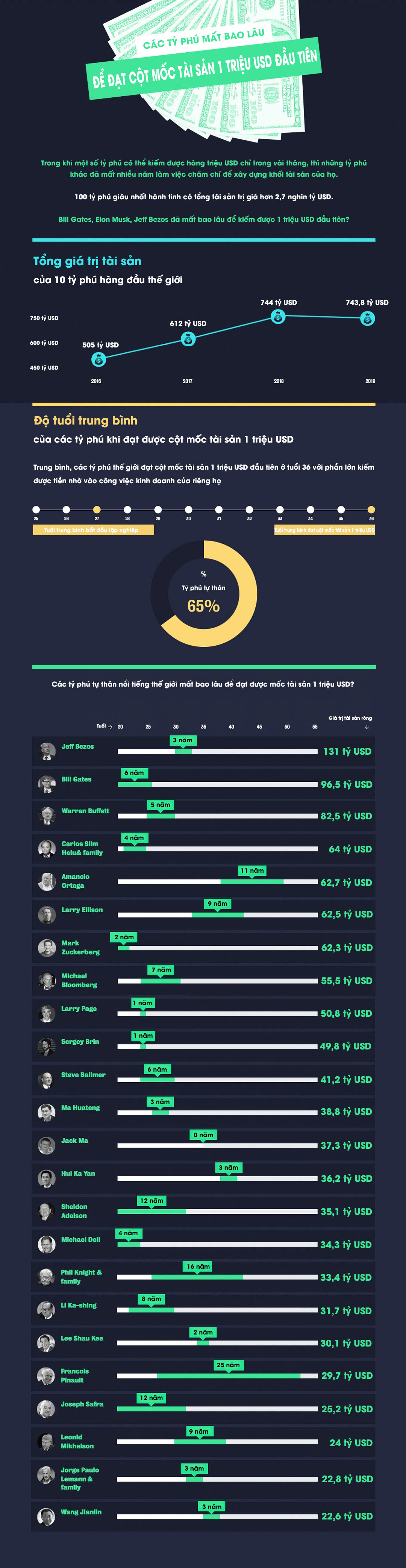 Các tỷ phú thế giới mất bao lâu để đạt cột mốc tài sản 1 triệu USD?