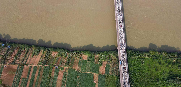 | Khoảng đất rộng mênh mông giữa đôi bờ sông Hồng ở khu vực các quận trung tâm Hà Nội nhìn từ trên cao. |