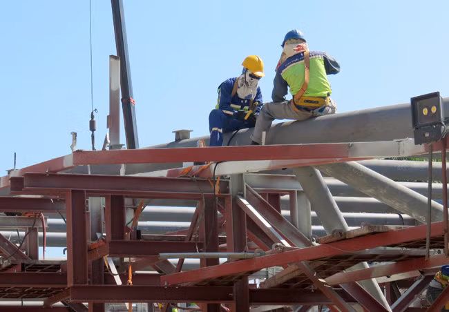 Cán bộ, kỹ sư của AHT, công nhân của gần 20 nhà thầu thi công dưới cái nắng gần 40oC của Đà Nẵng.