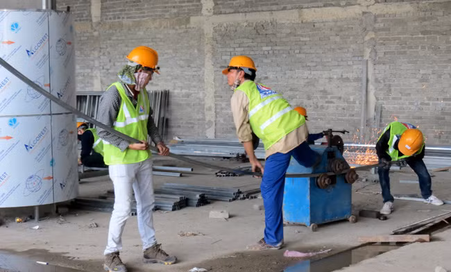 Hạng mục xây thô đã căn bản hoàn thành, các nhà thầu bắt đầu tiến hành hoàn thiện nội thất.