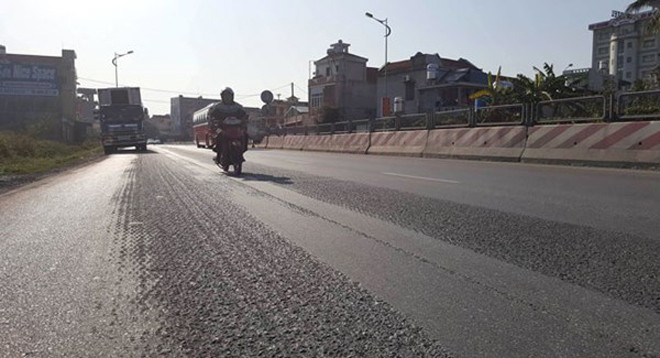 Những vệt này khiến các phương tiện tham gia giao thông trên tuyến gặp rất nhiều khó khăn, bị hạn chế tốc độ và tiềm ẩn nguy cơ tai nạn.