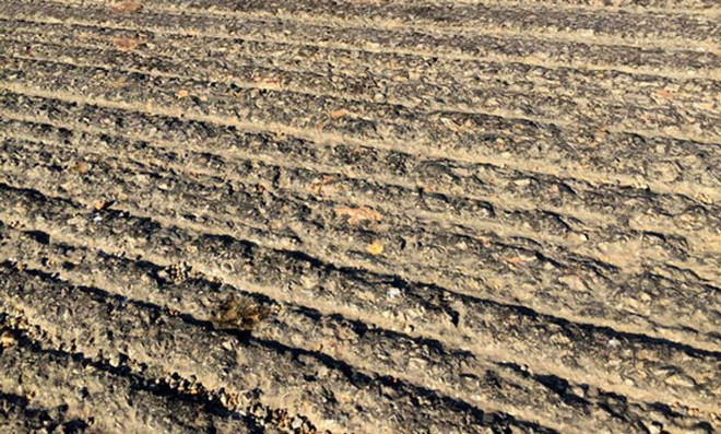 | Những đoạn được chủ đầu tư cào bằng lớp sống trâu để lộ ra những viên đá nhỏ cùng rãnh gây khó khăn cho các phương tiện di chuyển và mất an toàn khi tham gia giao thông trên tuyến đường này. |