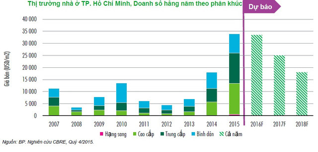 Xét về nguồn cầu, tỷ lệ tiêu thụ năm 2016 dự kiến sẽ chậm hơn so với năm 2015 bởi các dự án mới đều chào giá cao hơn hẳn và người mua cần thời gian để thích ứng với ngưỡng giá mới này. Đến năm 2017 tỷ lệ tiêu thụ tiếp tục giảm, đặc biệt vào nửa cuối năm khi thị trường có xu hướng giảm nhiệt sau hai năm tăng trưởng nóng.