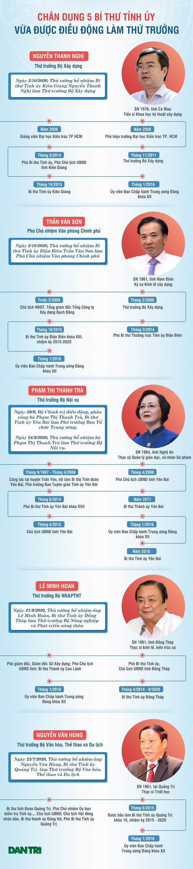 Chân dung 5 Bí thư Tỉnh ủy vừa được điều động làm Thứ trưởng