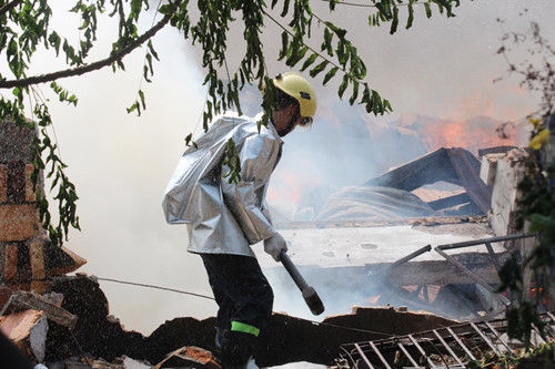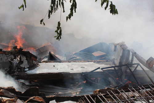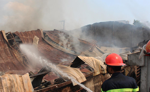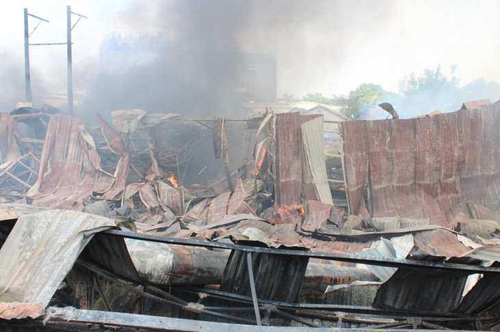 Sau hơn 3 tiếng đồng hồ, toàn bộ khu nhà xưởng rộng trên 1.000 m2 của Công ty Wang Feng đã bị đổ sập hoàn toàn. Nhiều máy móc, thiết bị và nguyên phụ liệu cũng bị cháy rụi, thiệt hại ước tính hàng tỉ đồng.