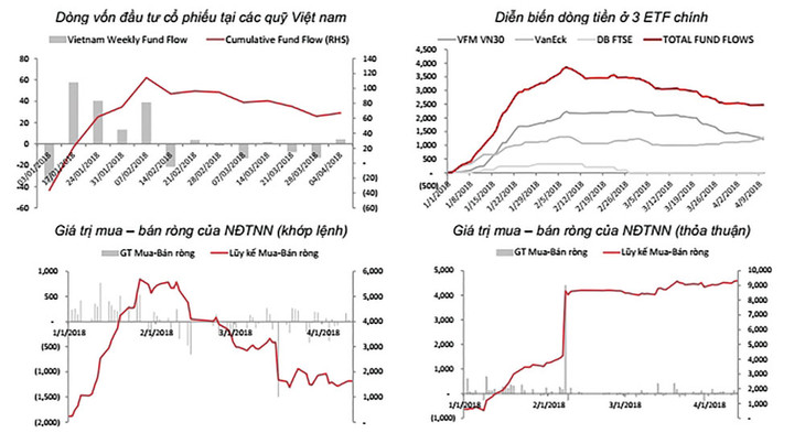 Theo thống kê của EPFR Global, xu hướng rút vốn khỏi các quỹ đầu tư cổ phiếu của Việt Nam đã bắt đầu vào tuần thứ 2 của tháng 2, cùng thời điểm với sự sụt giảm của chứng khoán toàn cầu và kéo dài cho đến cuối tháng 3. Tuần đầu tháng 4, dòng tiền rót vốn nhỏ quay lại, tương đồng với dòng tiền rót vốn gia tăng ở khu vực thị trường mới nổi châu Á.