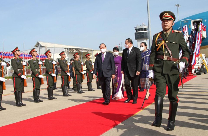| Chủ tịch nước và Phu nhân đến sân bay quốc tế Wattay, Thủ đô Vientiane |