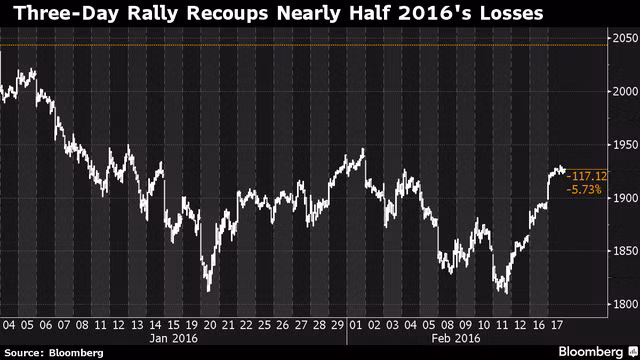 Kết thúc phiên hôm qua (17/2), chỉ số S&P 500 tăng 1,7%, lên 1.926,82 điểm, cao nhất 2 tuần. Chỉ số Dow Jones tăng 1,6%, lên 16.453,83 điểm. Nasdaq cũng tăng 2,2%. Khoảng 9,2 tỷ cổ phiếu được giao dịch trong phiên, cao hơn 14% so với mức trung bình 3 tháng.