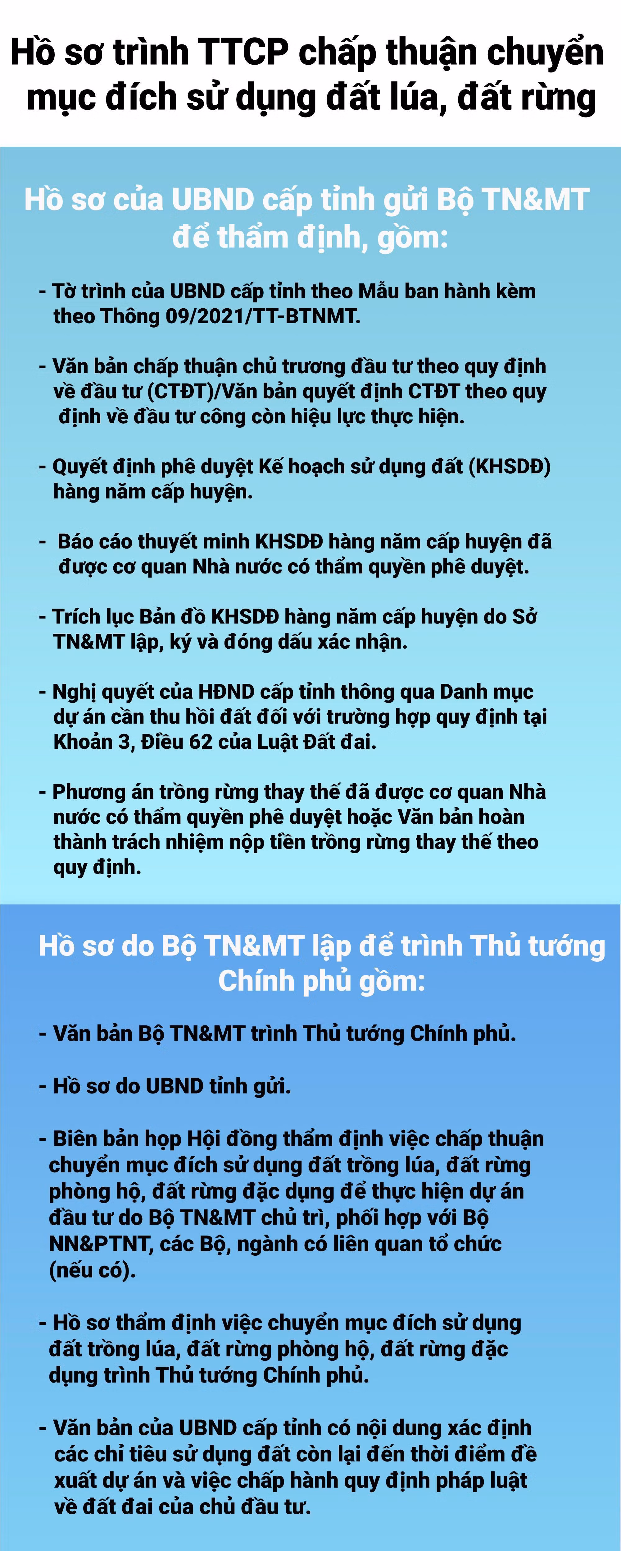 Theo thông tư 09/2021/TT-BTNMT, từ ngày 1/9, hướng dẫn hồ sơ trình Thủ tướng Chính phủ chấp thuận việc chuyển mục đích sử dụng đất trồng lúa, đất rừng để thực hiện dự án chính thức có hiệu lực.