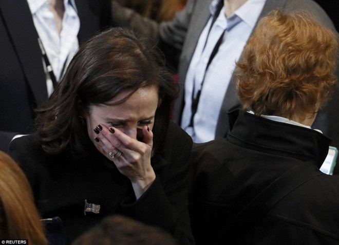 Bất ngờ và choáng váng, nhiều người ủng hộ bà Clinton chỉ biết cố che đi nét thất vọng trên gương mặt. Ảnh: AP