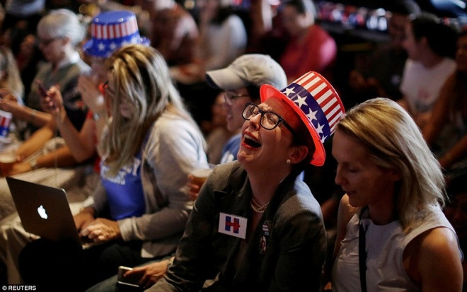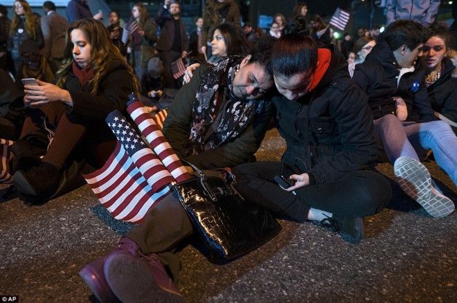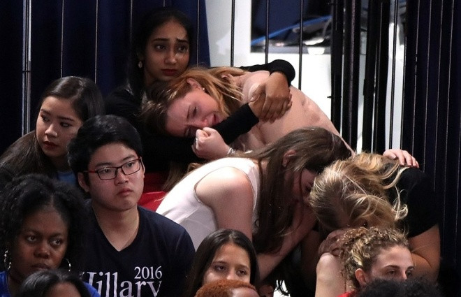 Trước kết quả quá bất ngờ, những người ủng hộ bà Hillary Clinton bỗng rơi vào trạng thái cảm xúc bàng hoàng. Nhiều người không thể cầm nước mắt. Ảnh: AP