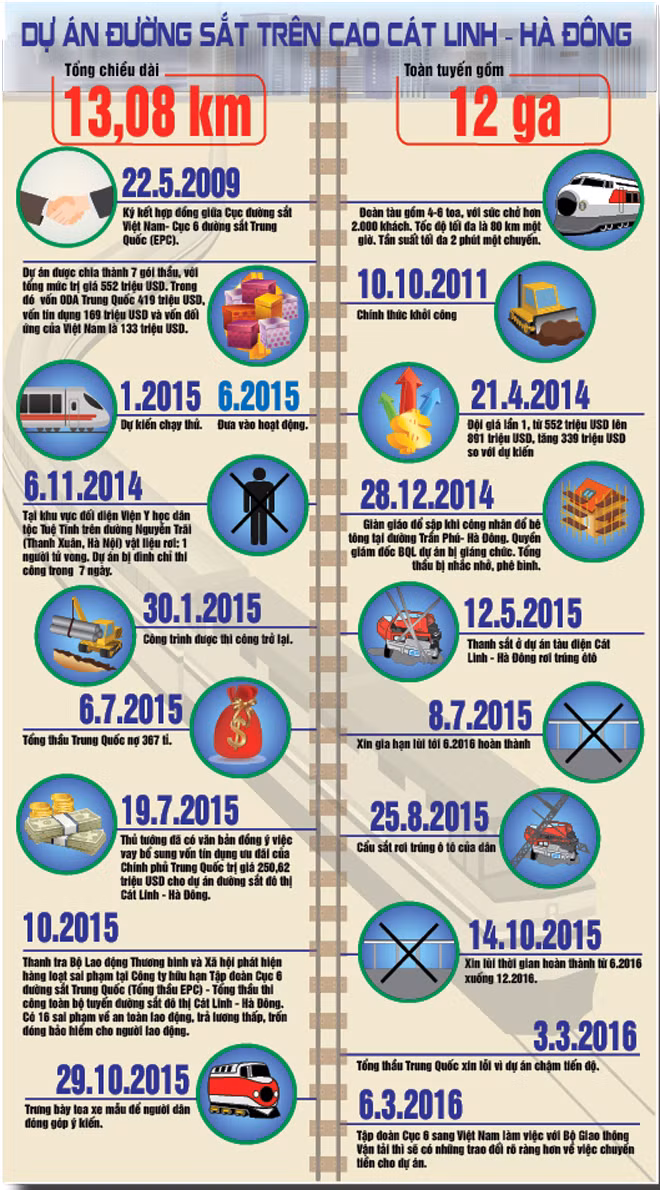 | Công trình đường sắt trên cao Cát Linh - Hà Đông (Hà Nội) thi công kéo dài gây phiền toái trầm trọng cho người dân thủ đô. |
