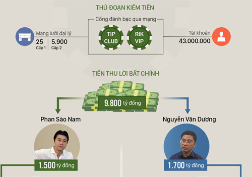 Đường dây đánh bạc trực tuyến do Nguyễn Văn Dương (cựu tổng giám đốc công ty TNHH Đầu tư và phát triển an ninh công nghệ cao - CNC) và Phan Sào Nam (cựu chủ tịch công ty VTC online) điều hành thông qua hai cổng Rikvip/Tip.club đã thu hút gần 43 triệu tài khoản. Đây được đánh giá là mạng lưới trò chơi cờ bạc trá hình có quy mô và doanh thu lớn nhất Việt Nam.
