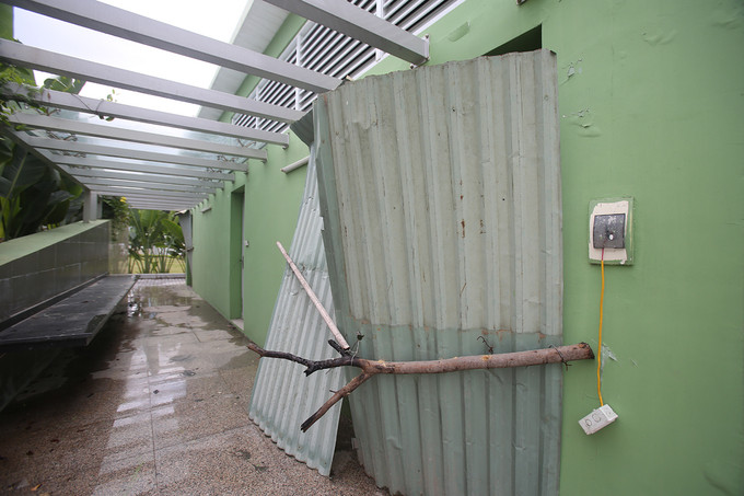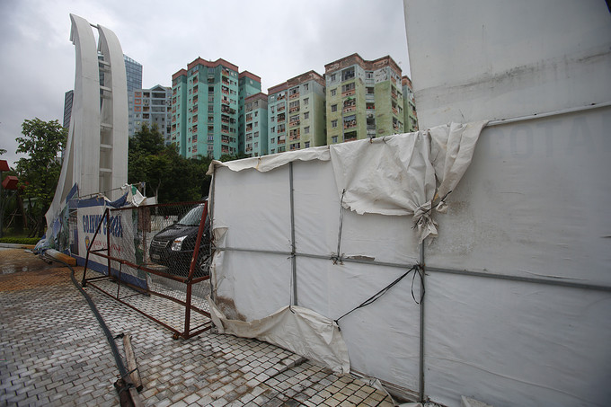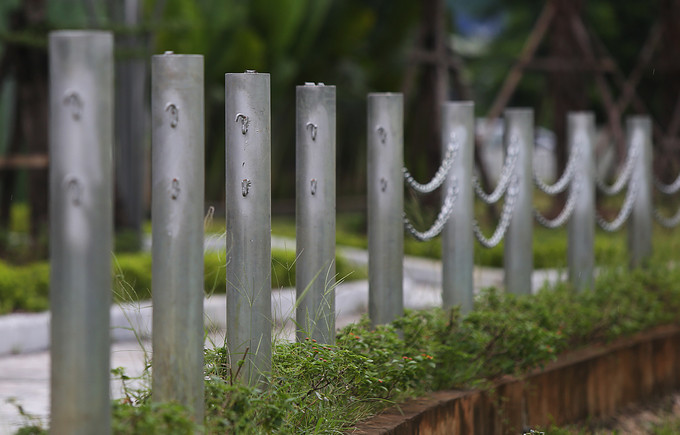 Dù chưa đi vào hoạt động nhưng một phần hàng rào sắt ven hồ đã bị bẻ cong móc và lấy đi nhiều dây xích.